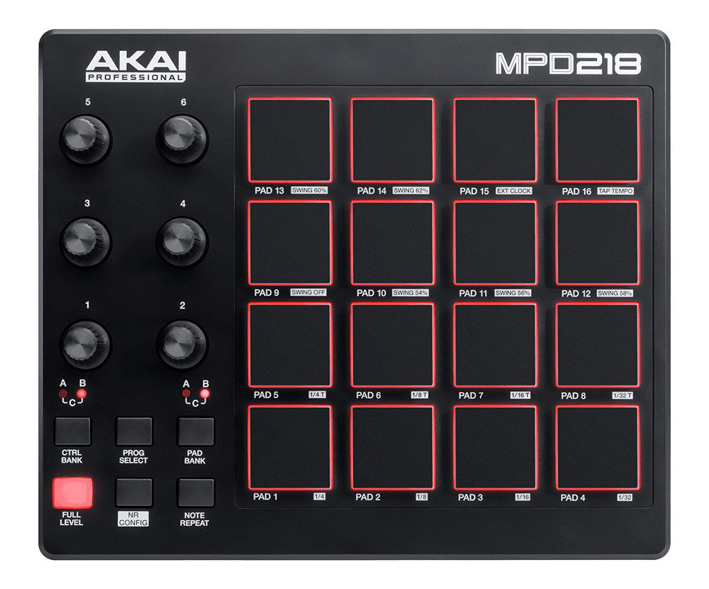 Akai MPD218 është një pad controller MIDI-over-USB, i dizajnuar për producentë, muzikantë, DJ dhe programues që duan ndjesinë klasike të beat-making me prakticitetin e prodhimit muzikor modern. Me Thick Fat MPC pads të ndriçuara, kontroll të zgjeruar me 6 knob në 3 banka dhe lidhje të thjeshtë USB (pa nevojë për adapter ose driver), ky model sjell një eksperiencë të shpejtë, reaguese dhe intuitive.
