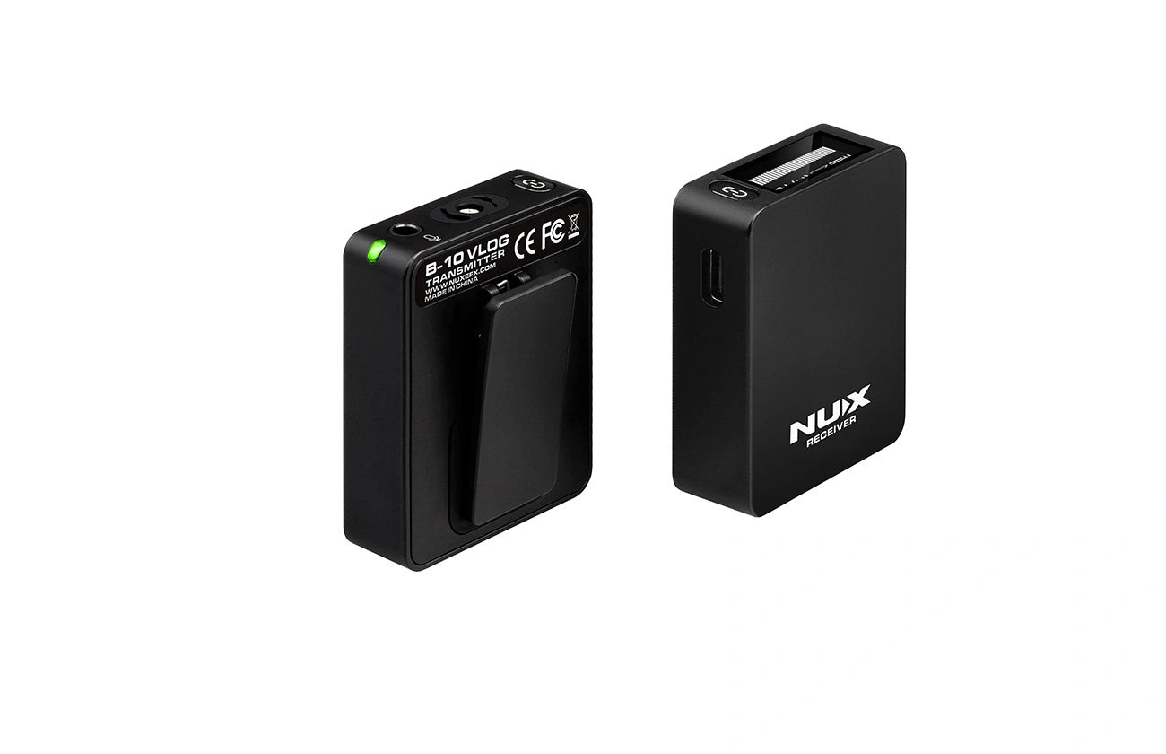 NUX B-10 Vlog është një sistem kompakt dhe i lehtë mikrofonësh wireless, i përbërë nga një transmetues dhe një marrës. Ai ofron distancë wireless deri në 30 metra, audio me cilësi të lartë, me zhurmë të ulët dhe latencë minimale (<5ms). I përshtatshëm për vlog, streaming, evente live, konferenca dhe regjistrime profesionale me kamera ose smartphone.