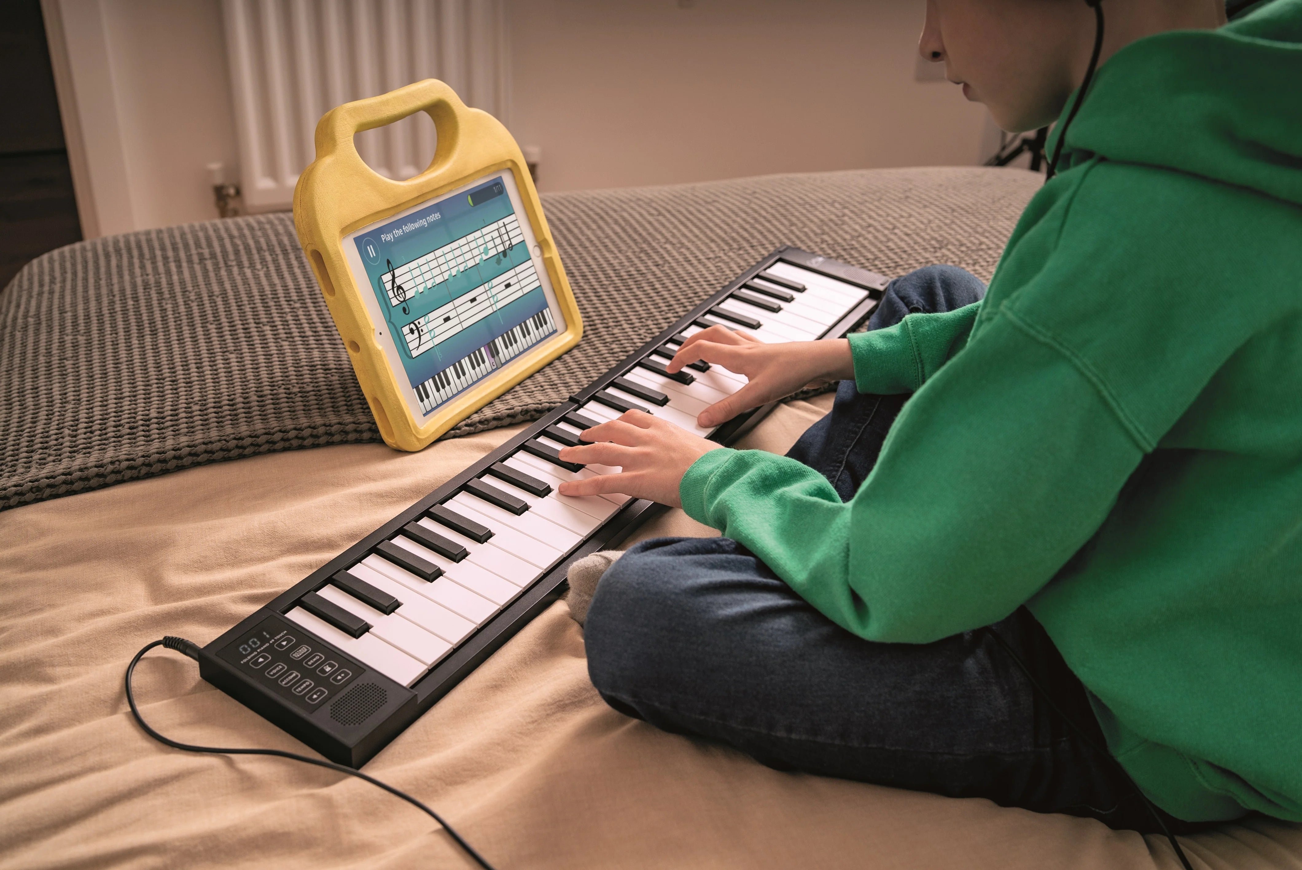 Carry-on 49 Touch Folding Piano është një piano ultra-portabël me 49 çelësa të ndjeshëm në prekje, ideale për fillestarë dhe muzikantë që udhëtojnë. Pajisja ofron 128 zëra të ndryshëm dhe 128 stile akompaniamenti, duke e bërë të mundur krijimin e interpretimeve të pasura muzikore. Mund të lidhet me kompjuterë dhe software muzikor përmes USB ose Bluetooth MIDI. Bateria e riciklueshme ofron deri në 8 orë lojë të vazhdueshme, ndërsa dizajni i lehtë dhe i palueshëm e bën të përshtatshëm për udhëtime apo praktikë në çdo vend.