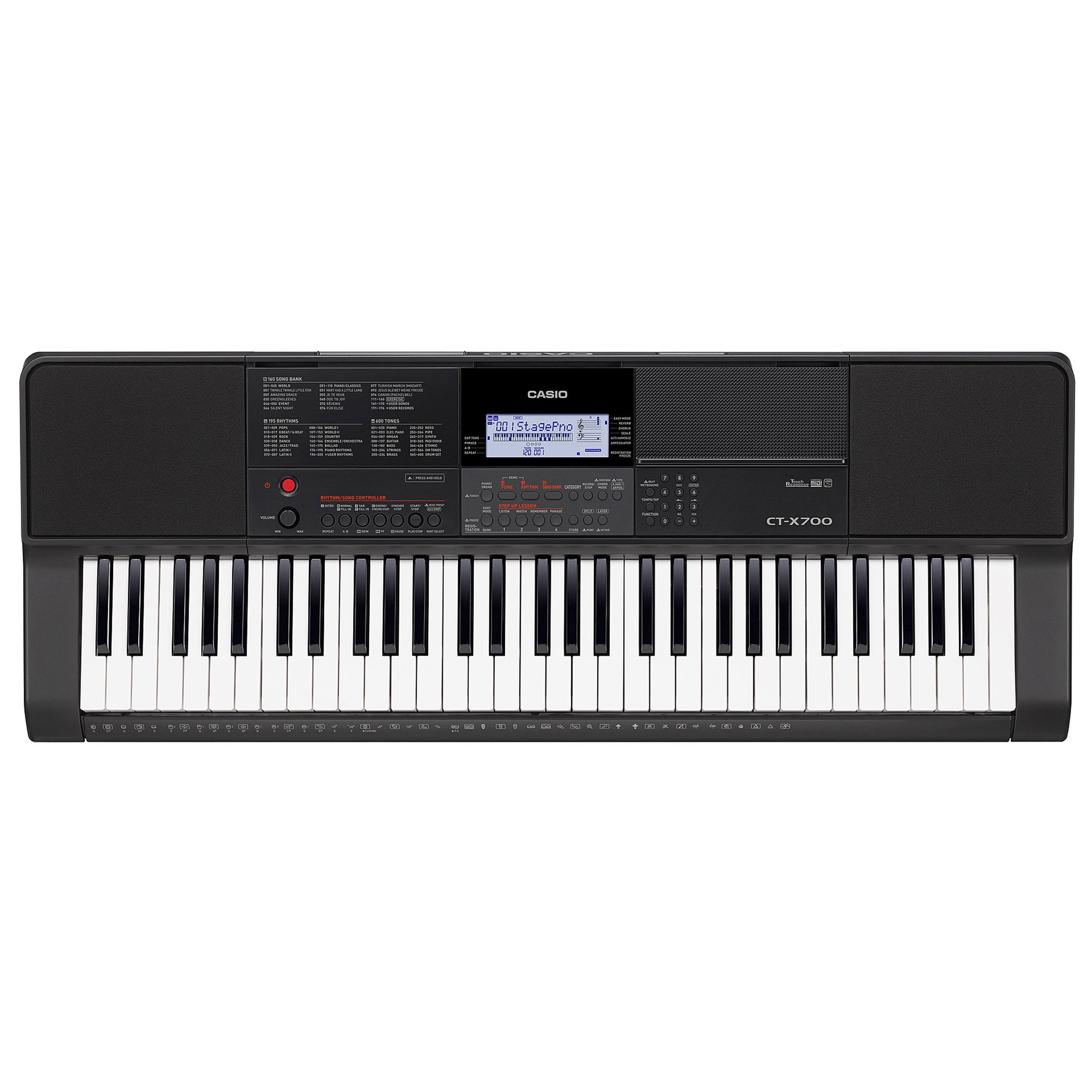 61 tasta, polyphony 48 nota, me mundësi ndarje (split) dhe shtim tingujsh (layer).
