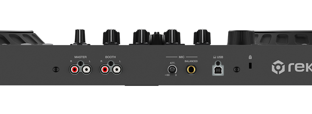 1 × MASTER (RCA), 1 × BOOTH (RCA), 2 × Headphone (1/4" & 3.5 mm) |