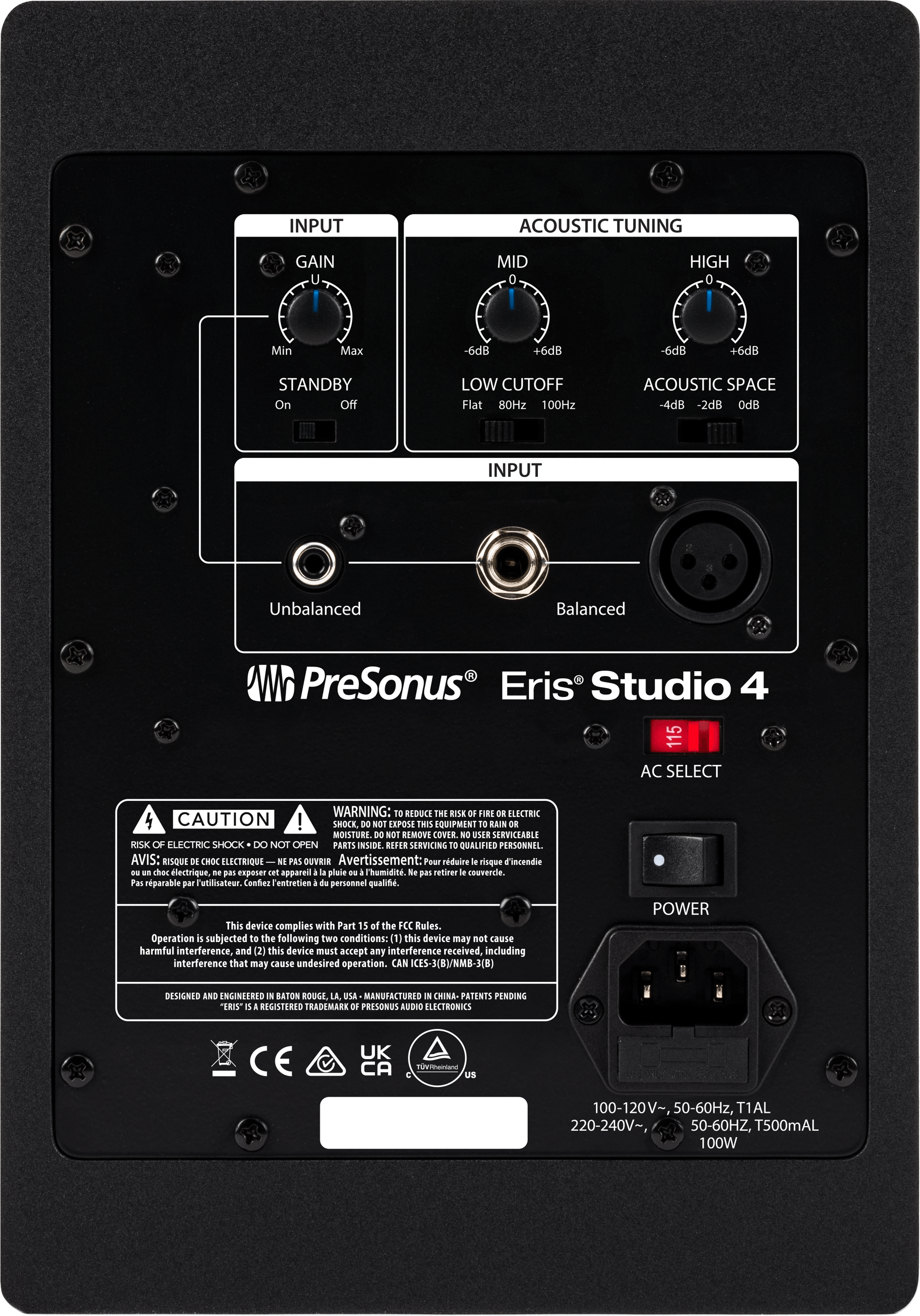 Eris® Studio 4 & 5 janë monitorë aktivë 2-way me woofer 4.5" dhe 5.25" dhe tweeter 1" me kupolë mëndafshi, dizajnuar për studio të vogla dhe prodhim muzikor në shtëpi. Monitorët ofrojnë bas të fortë dhe të qartë, imazhim stereo të gjerë dhe përgjigje të saktë të frekuencave të larta falë EBM waveguide. Kontrolli i integruar i tingullit (HF, Mid, Acoustic Space dhe Low Cut) lejon përshtatje perfekte sipas hapësirës së dëgjimit.