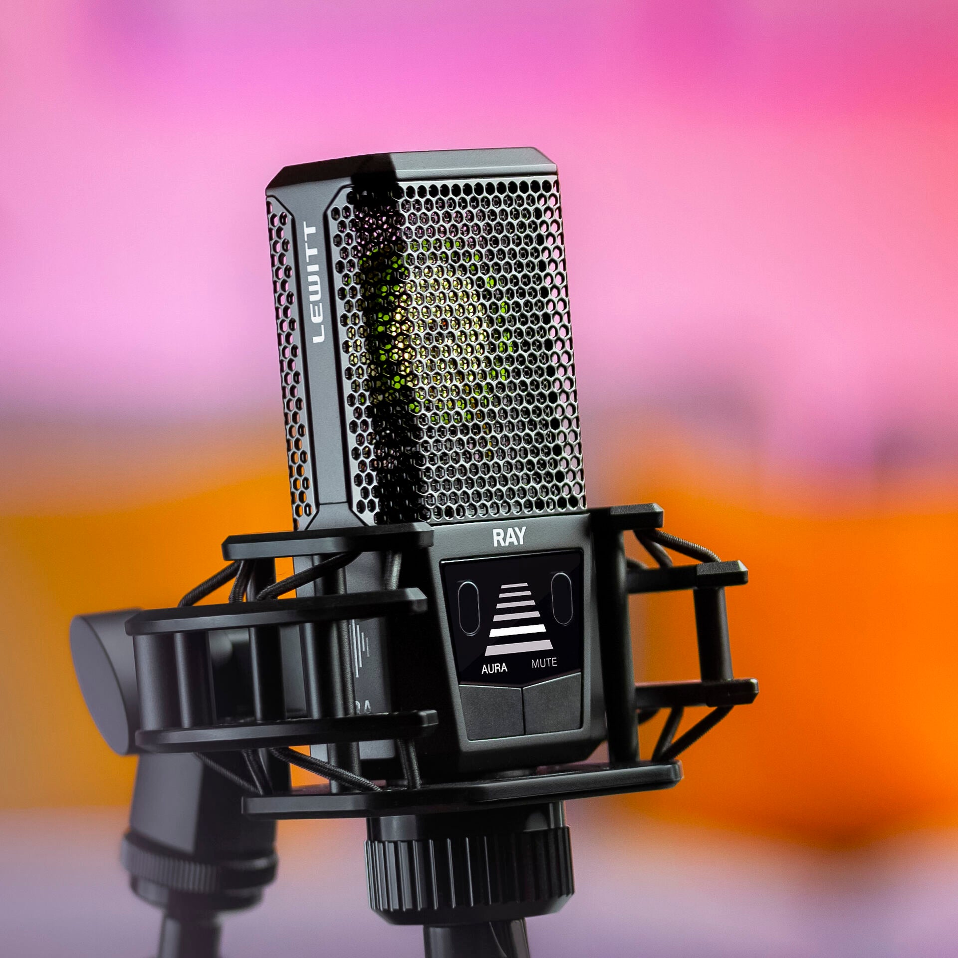 LEWITT RAY është një mikrofon XLR me kapsulë të vërtetë kondensatore dhe me teknologjinë unike AURA, e cila mat vazhdimisht distancën tënde dhe përshtat automatikisht volumin dhe tonalitetin e zërit.