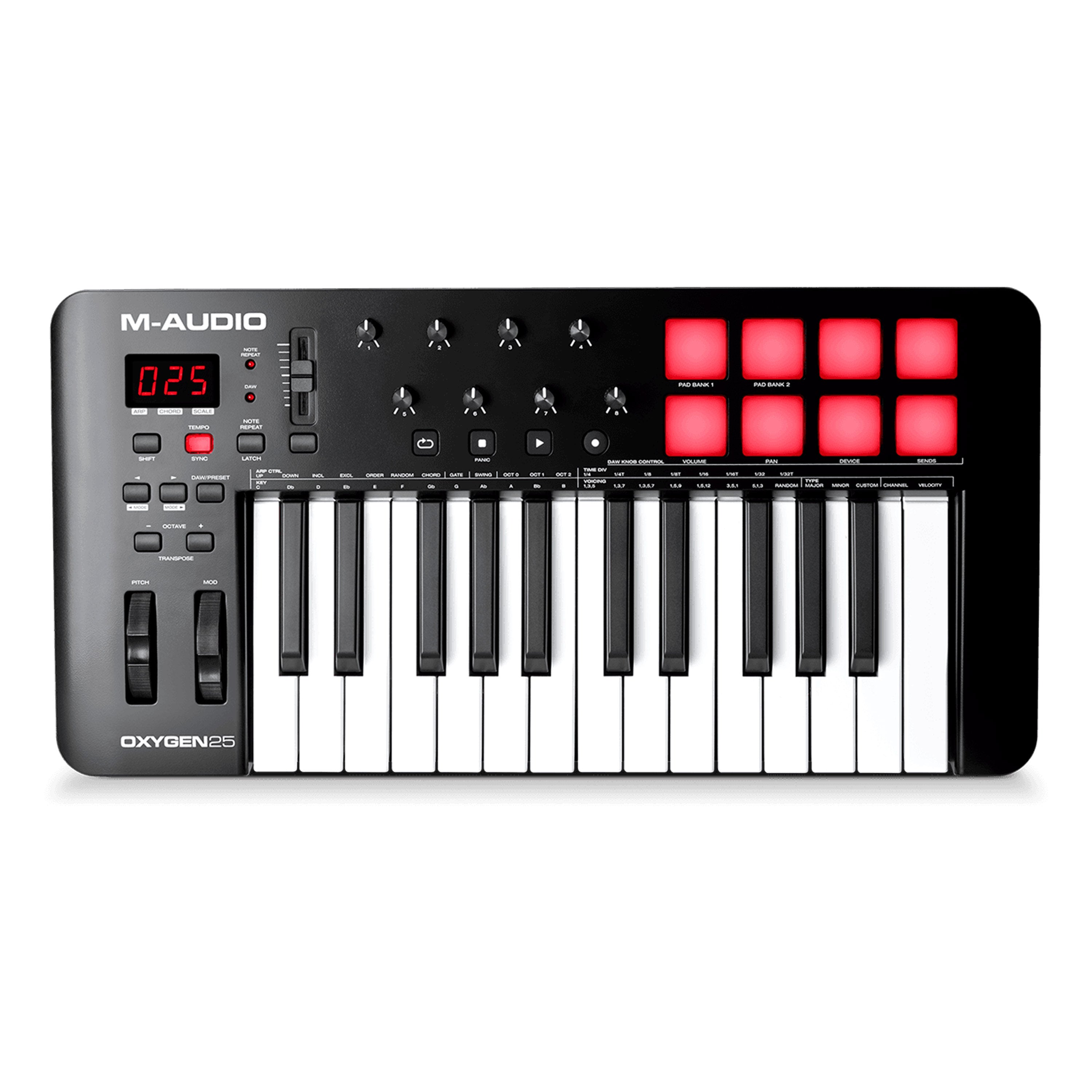 25 full-size velocity-sensitive keys |