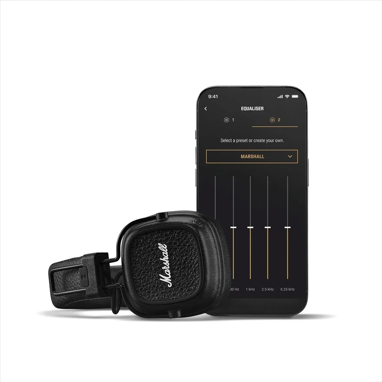 Butoni M-Button i personalizueshëm dhe aplikacioni Marshall Bluetooth ju japin kontroll të plotë mbi muzikën, EQ, Spotify Tap ose asistentin tuaj zanor. Kufjet janë të përgatitura edhe për Bluetooth LE Audio, duke ofruar lidhje më të qëndrueshme dhe mundësi të reja ndarjeje audio me Auracast™.