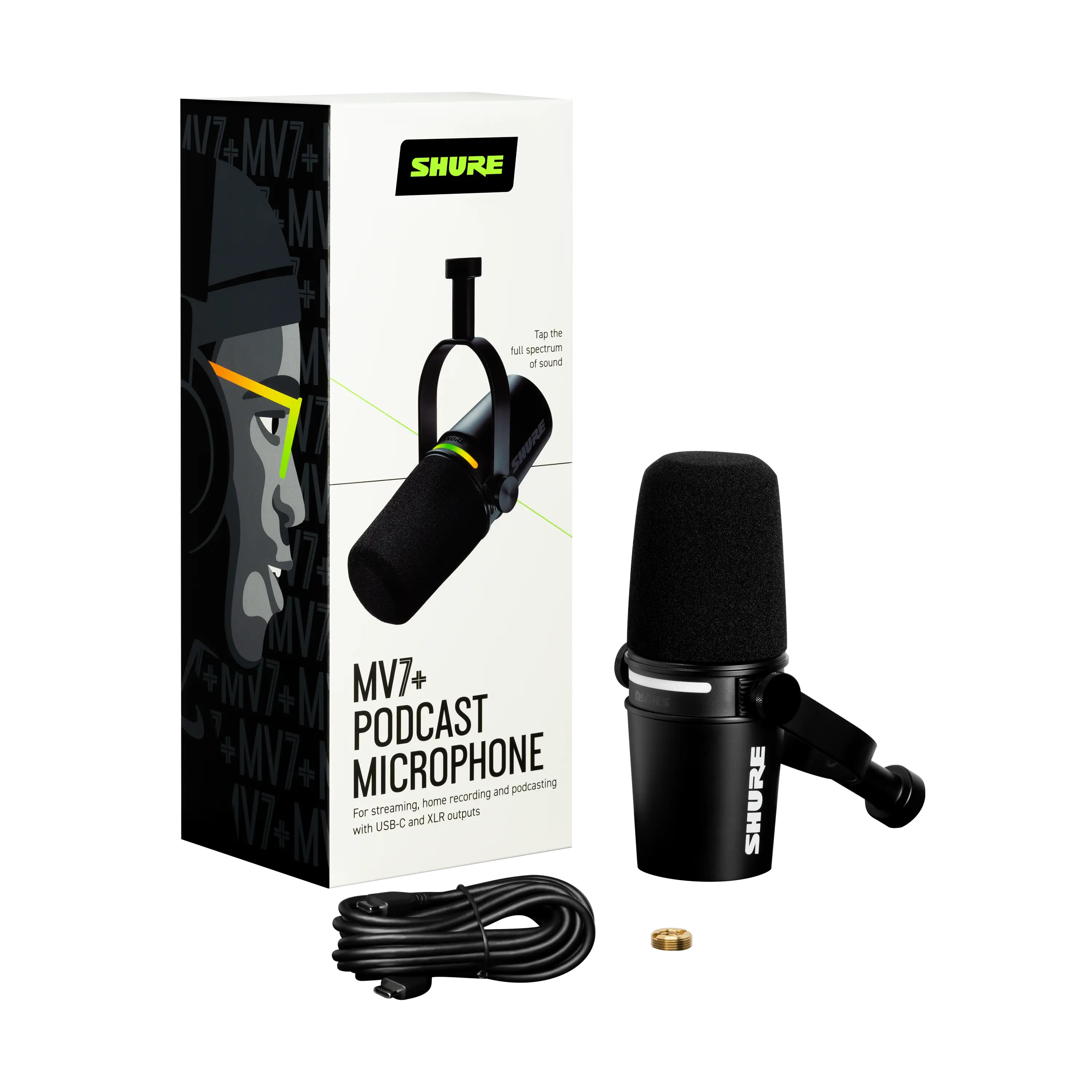 Shure MV7+ është një mikrofon dinamik i avancuar, i dizajnuar për podcasterë, streamer-a dhe muzikantë që kërkojnë cilësi broadcast-i me veçori moderne. Ky version i përditësuar sjell LED panel me ngjyra të personalizueshme, DSP të fuqishëm dhe lidhje të dyfishta USB-C & XLR.