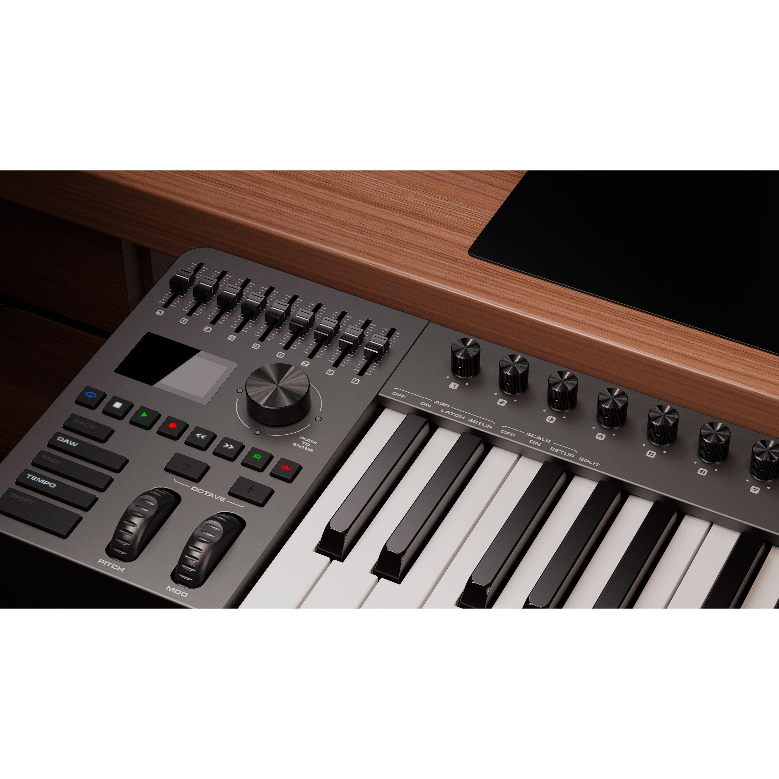 Sustain pedal input (6.35 mm), MIDI Out (5-pin DIN), USB-B |