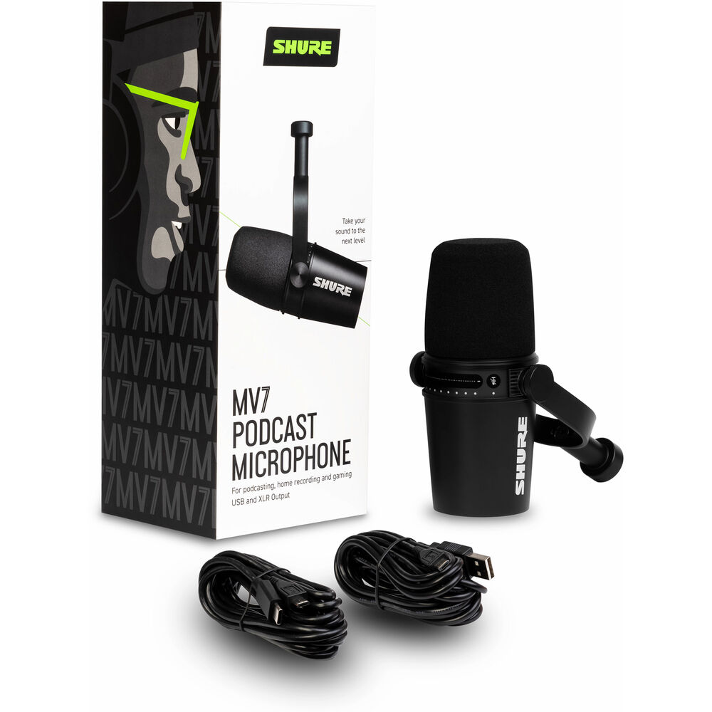 Shure MV7 Microphone, 10ft (3m) USB-A cable, 10ft (3m) USB-C cable |