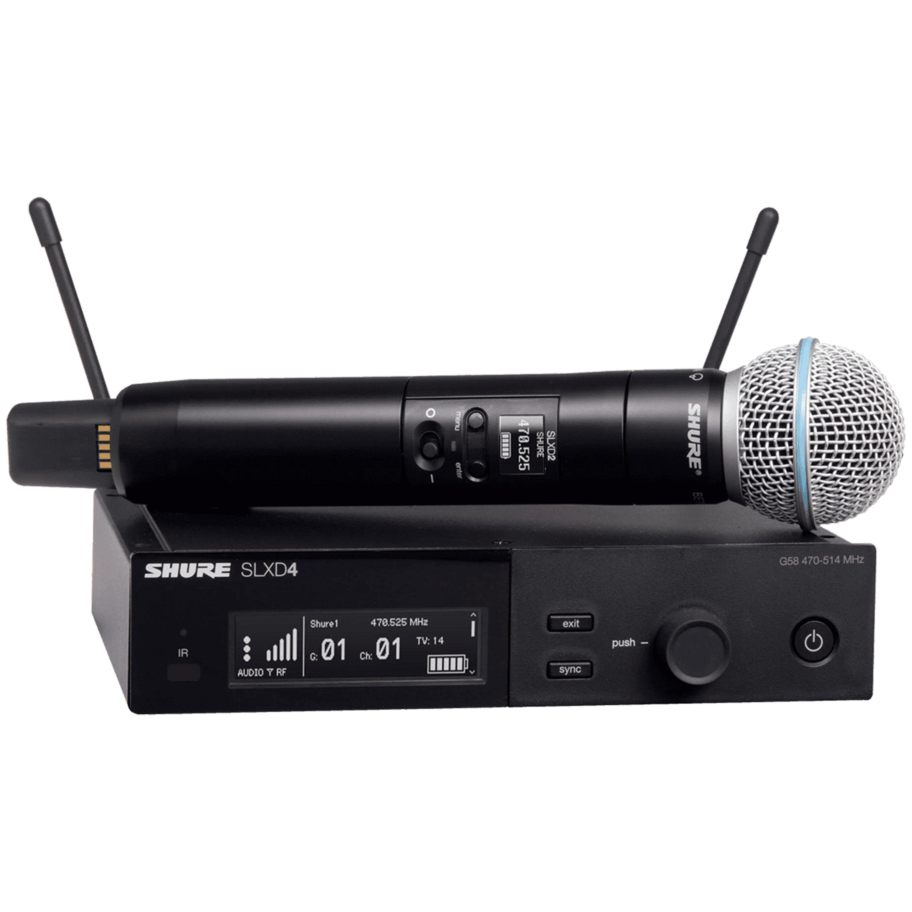 Sistemi mbështet deri në 32 sisteme të pajtueshme në një brez 44 MHz dhe ofron setup të thjeshtë, me mundësi përdorimi të aksesorëve të karikueshëm për fleksibilitet maksimal. Paketimi përfshin SLXD4 single-channel receiver, transmetues SLXD2/B58, antena, aksesorë për rackmount dhe 2 bateri AA.