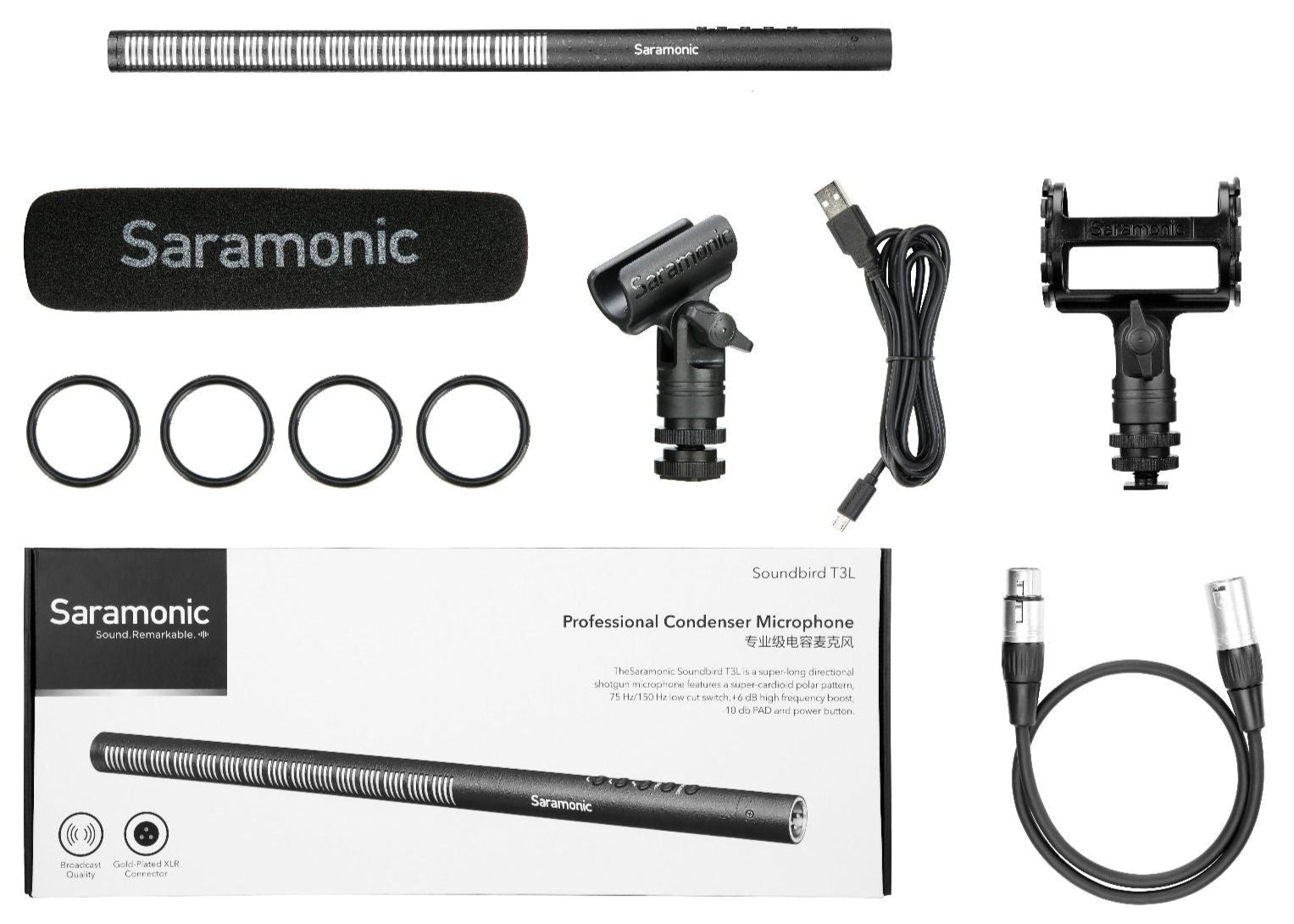 SoundBird T3L është një mikrofon shotgun profesional me trup të gjatë për regjistrime në terren dhe brenda ambienteve. I pajisur me tub të gjatë interferencës për drejtim më të fokusuar dhe eliminim të zhurmave të panevojshme nga anët, T3L është i përshtatshëm për filmime indie, dokumentarë, TV dhe regjistrime të dialogëve dhe efekteve zanore. Mikrofon i fuqizuar me bateri të brendshme Li-Ion (150 orë përdorim) ose me phantom 48V. Konstruktim prej bronzi të fortë, XLR me ar për sinjal të pastër dhe rezistencë ndaj korrozionit. Përfshin shockmount dhe mount për stand me disa opsione threads, windscreen dhe kabllo XLR, gjithçka që nevojitet për të filluar regjistrimin menjëherë.