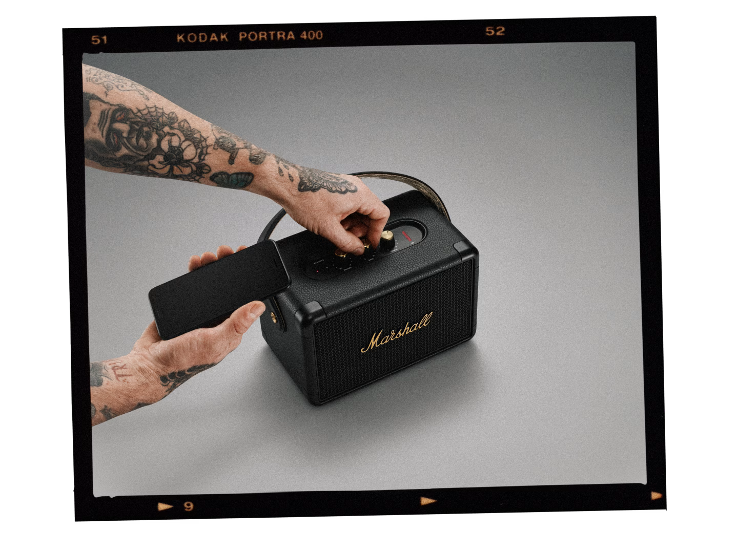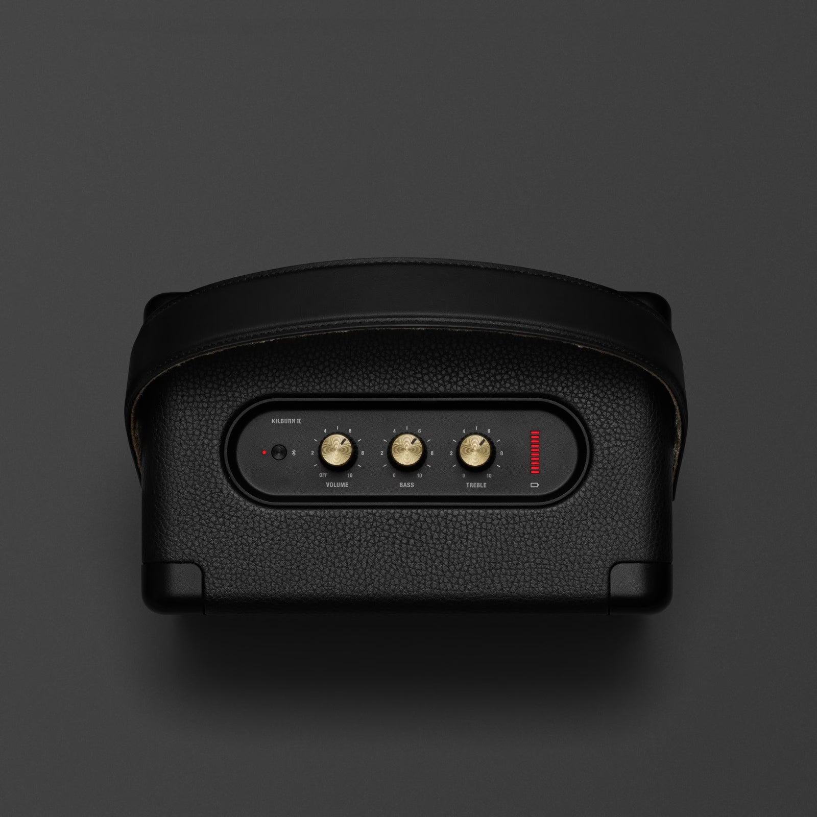 Marshall Kilburn II është një altoparlant portativ Bluetooth me tingull të qartë, bass të thellë dhe frekuenca të larta të zgjatura. Dizajni i tij ikonik dhe i fortë përfshin rrip dore të frymëzuar nga gitara dhe një grilë metalike të qëndrueshme. Me bateri mbi 20 orë dhe funksion True Stereophonic 360°, Kilburn II është ideal për çdo aventurë, jashtë ose brenda. Rezistenca ndaj ujit IPX2 e bën të qëndrueshëm ndaj spërkatjeve të ujit.