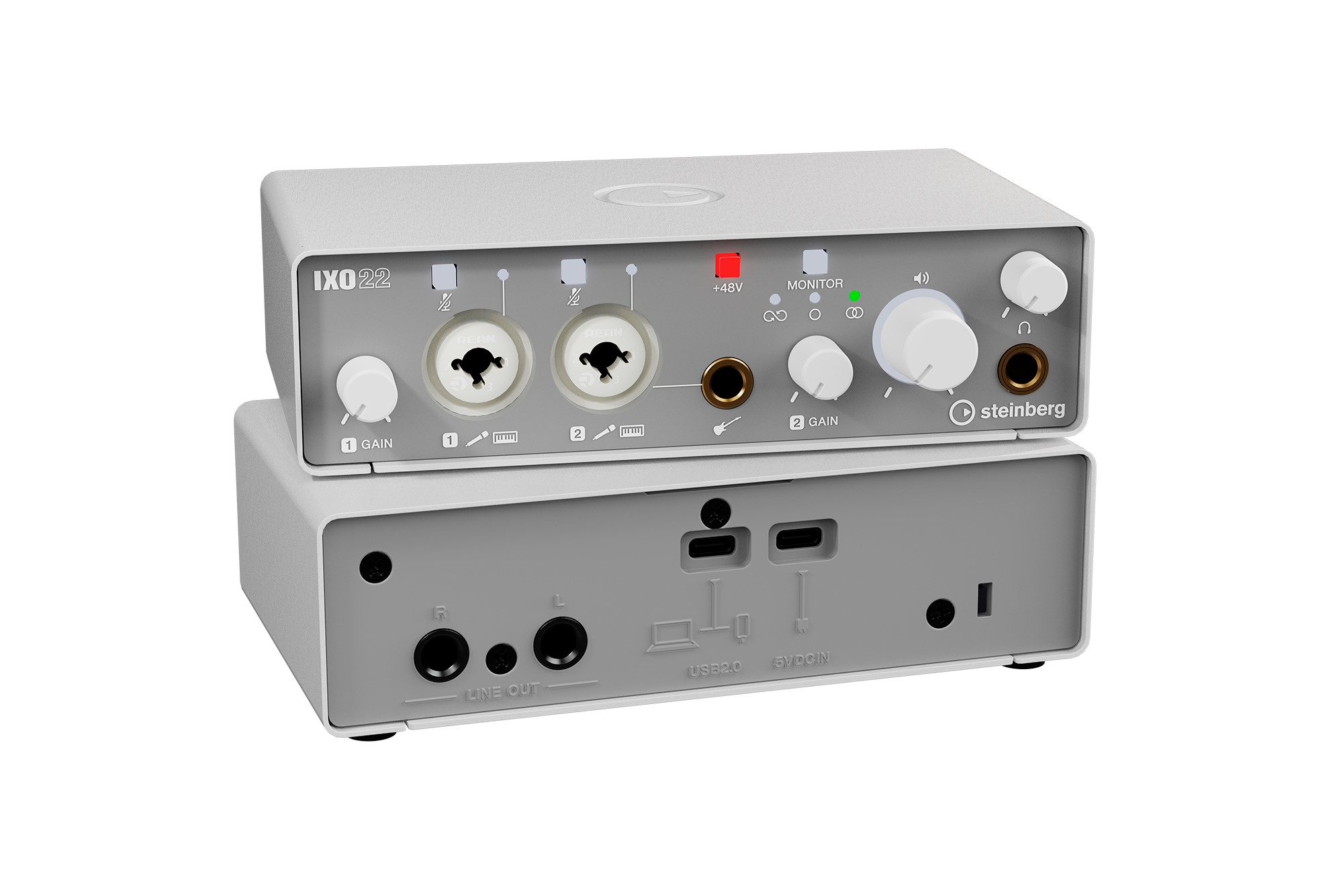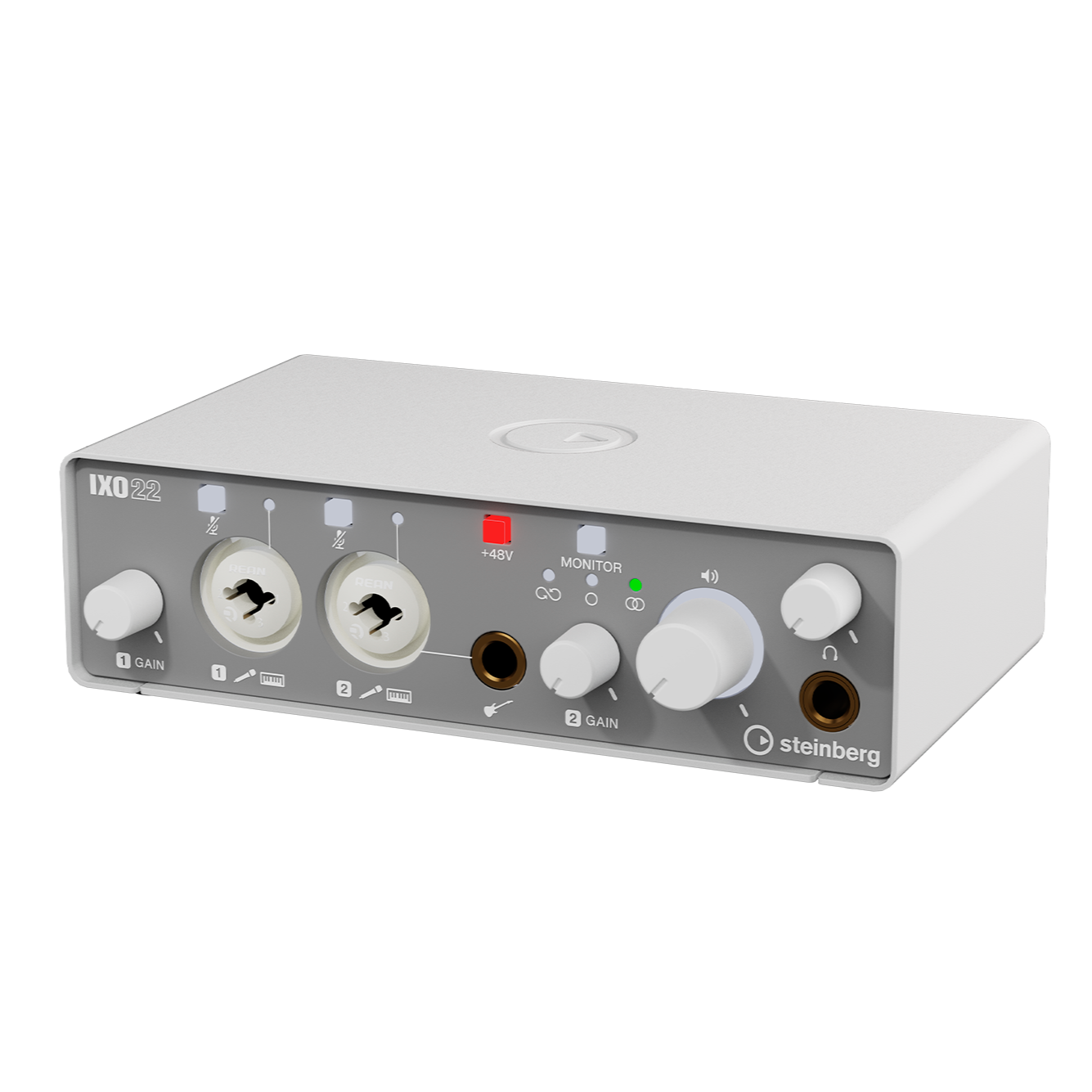 IXO22 është një audio interface kompakt dhe i lehtë, ideal për regjistrim, streaming dhe përdorim me kompjuter ose pajisje iOS. Ai ofron cilësi të lartë regjistrimi 24-bit/192 kHz, 2 preamps mikrofoni, një input Hi-Z për kitarë ose instrumente të tjera, dhe një output për kufje me kontroll të pavarur volumi. Loopback e bën të lehtë kombinimin e mikrofoni live me audio të regjistruar për streaming ose vlogging. Me Cubase AI, Cubasis LE dhe Steinberg Plus, IXO22 është i gatshëm për të nisur regjistrimet menjëherë.