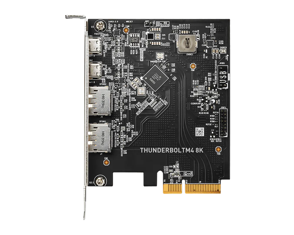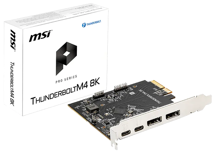 MSI ThunderboltM4 8K është një PCIe expansion card që i shton kompjuterit desktop lidhje Thunderbolt™ 4 me shpejtësi shumë të lartë.