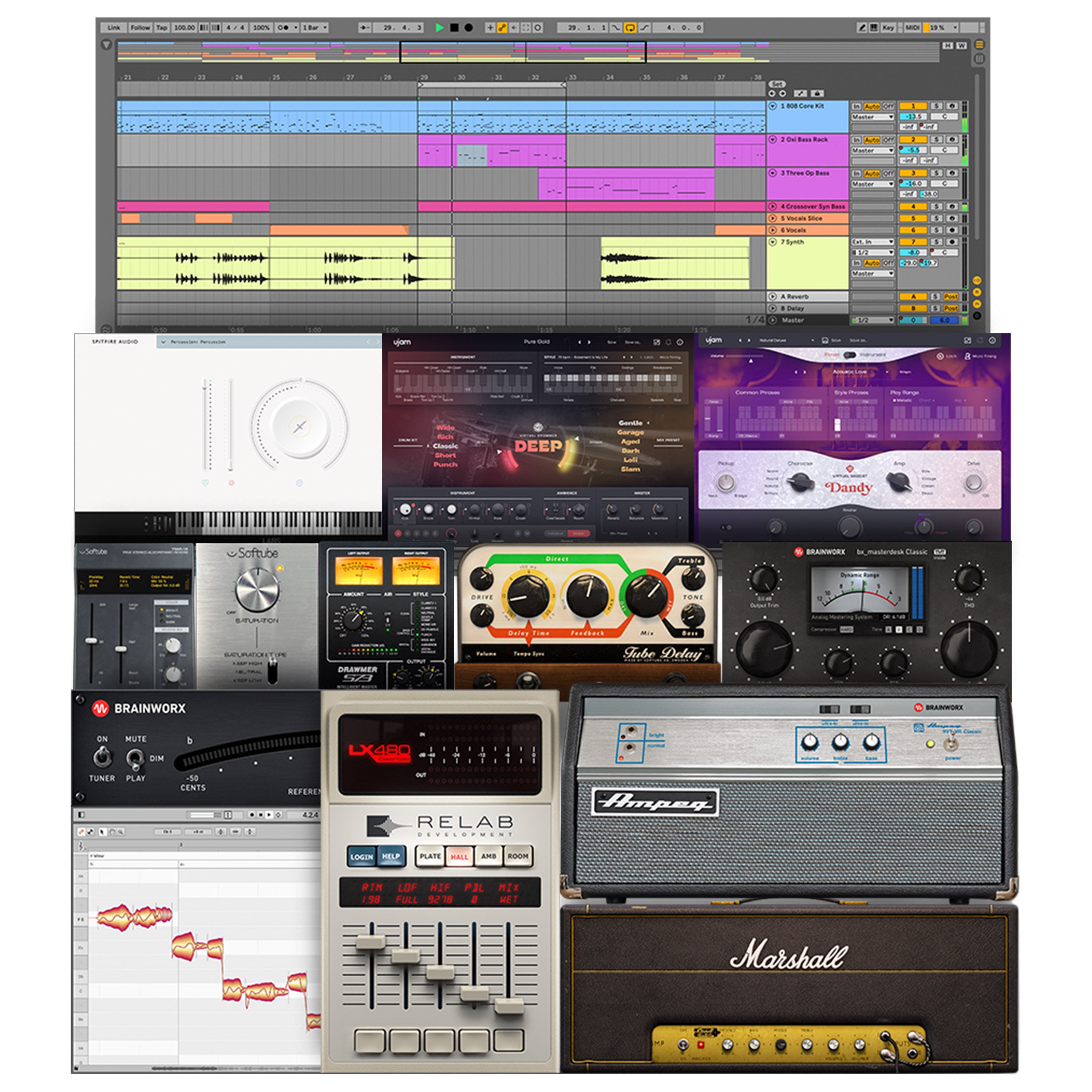 LUNA DAW, UAD Plug-ins, Ableton Live Lite, Melodyne Essential, etj. |