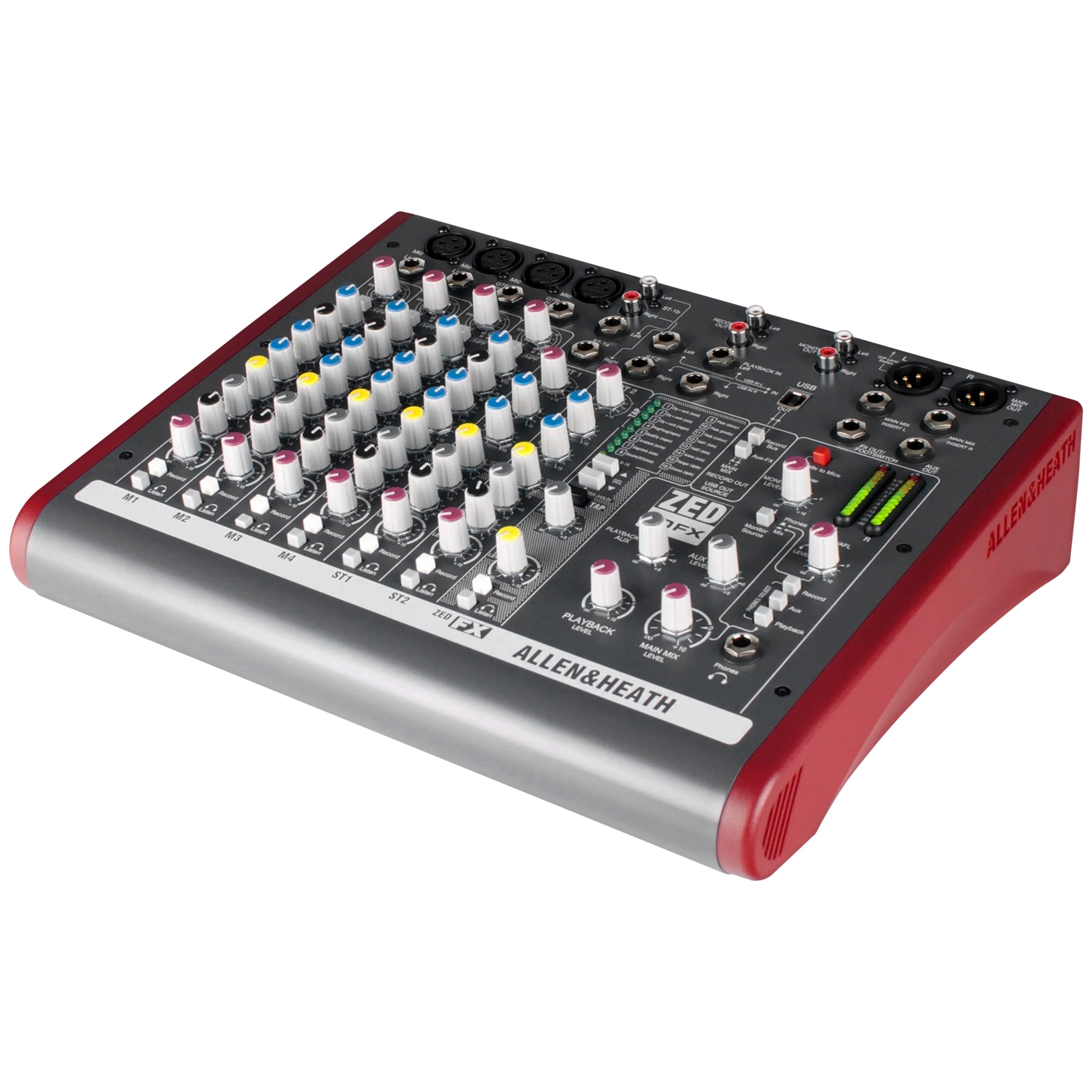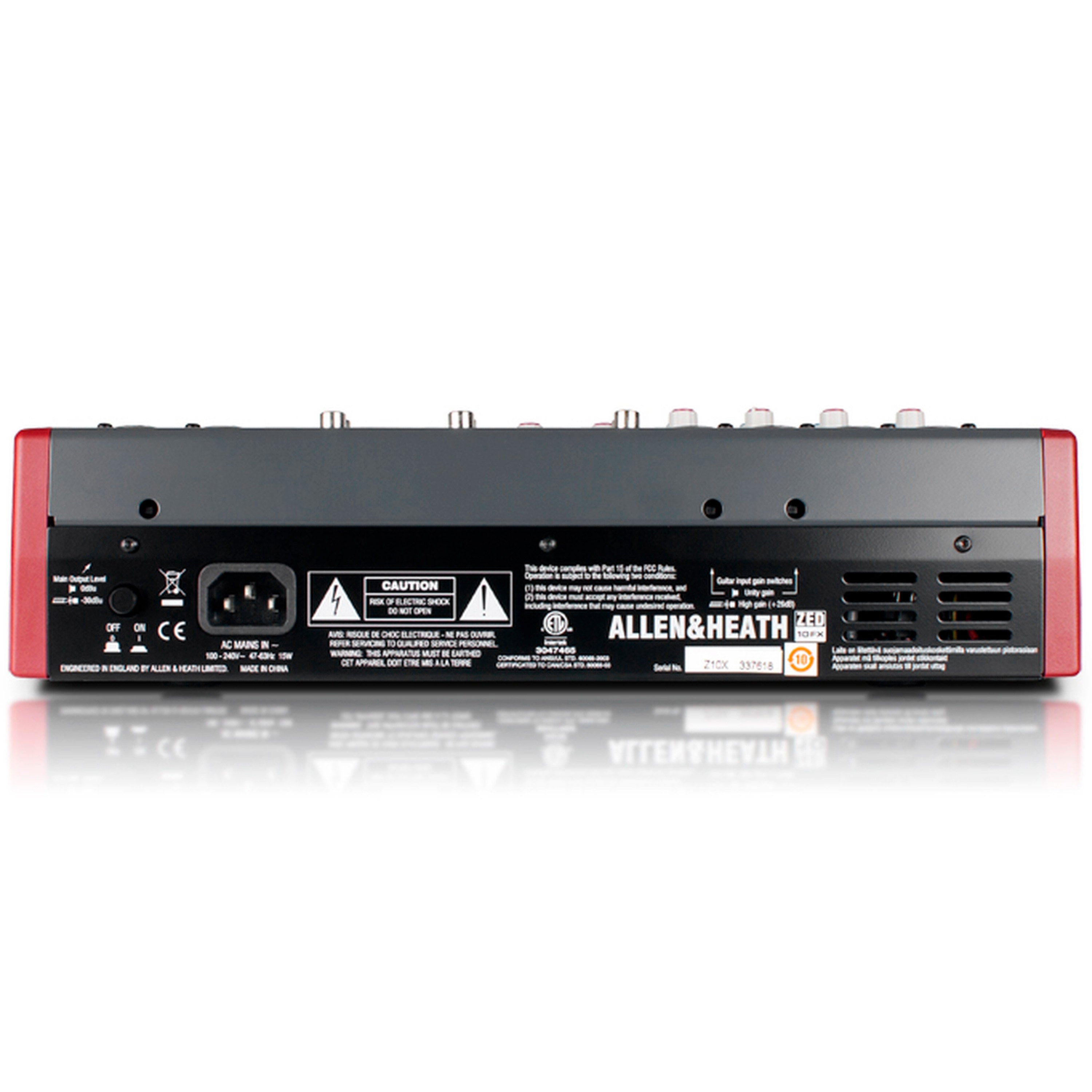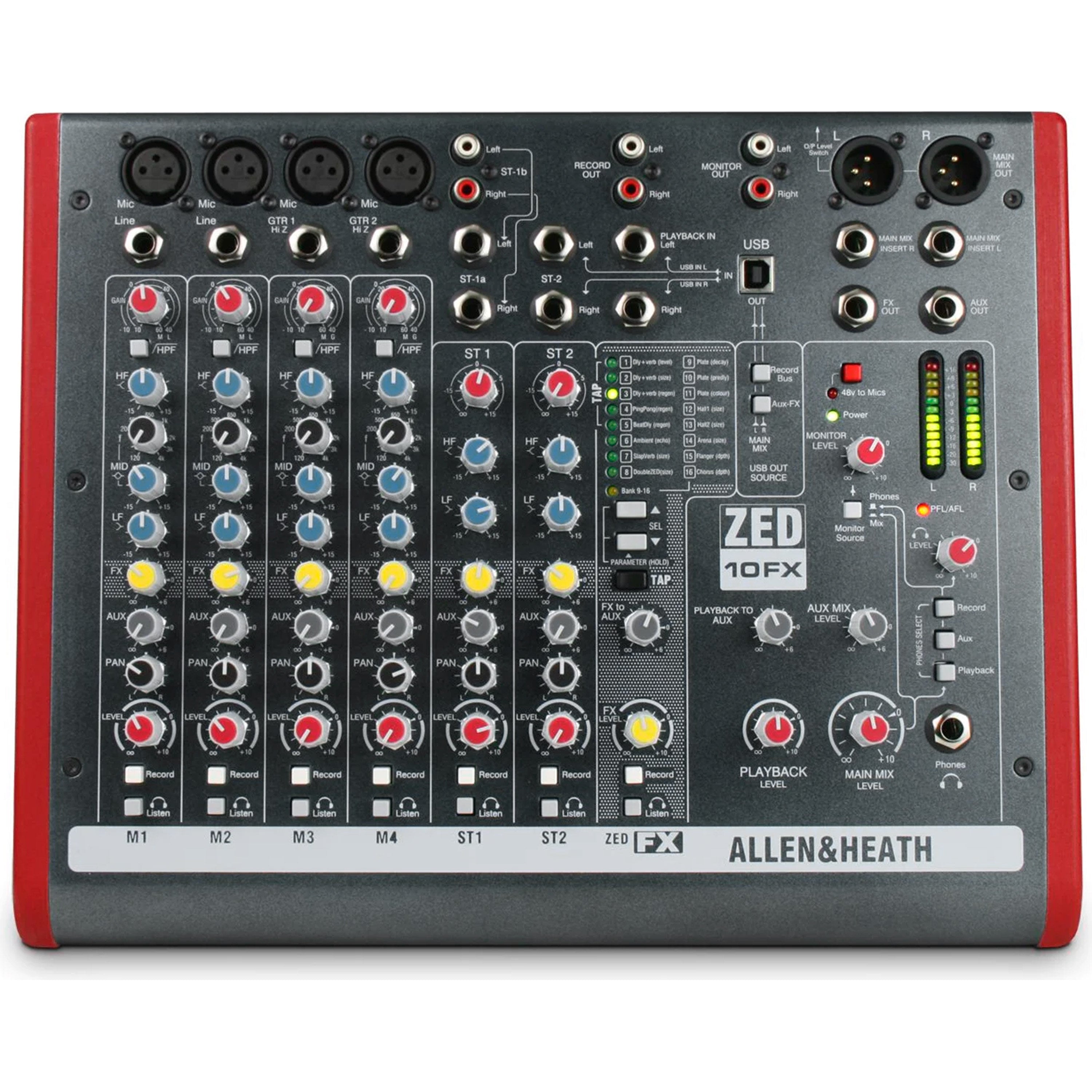Allen & Heath ZED-10FX është një mikser analog me 6 kanale që ofron vlerë të jashtëzakonshme për çmimin. Ka 4 input-e për mikrofon me 48V phantom power, 2 input-e Hi-Z për lidhje të drejtpërdrejtë të kitarës, dhe 2 input-e stereo për pajisje si keyboard, CD player ose iPod. Mikseri përfshin 16 efektet e brendshme me tap tempo, funksione pan/balance, low cut, dhe mundësi monitorimi fleksibël. I përkryer për studio, performanca live, ose përdorim në skenë.