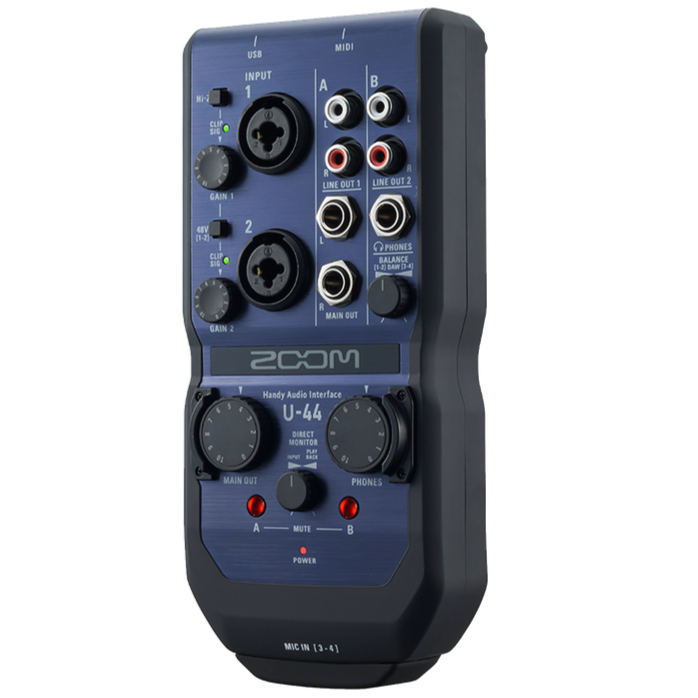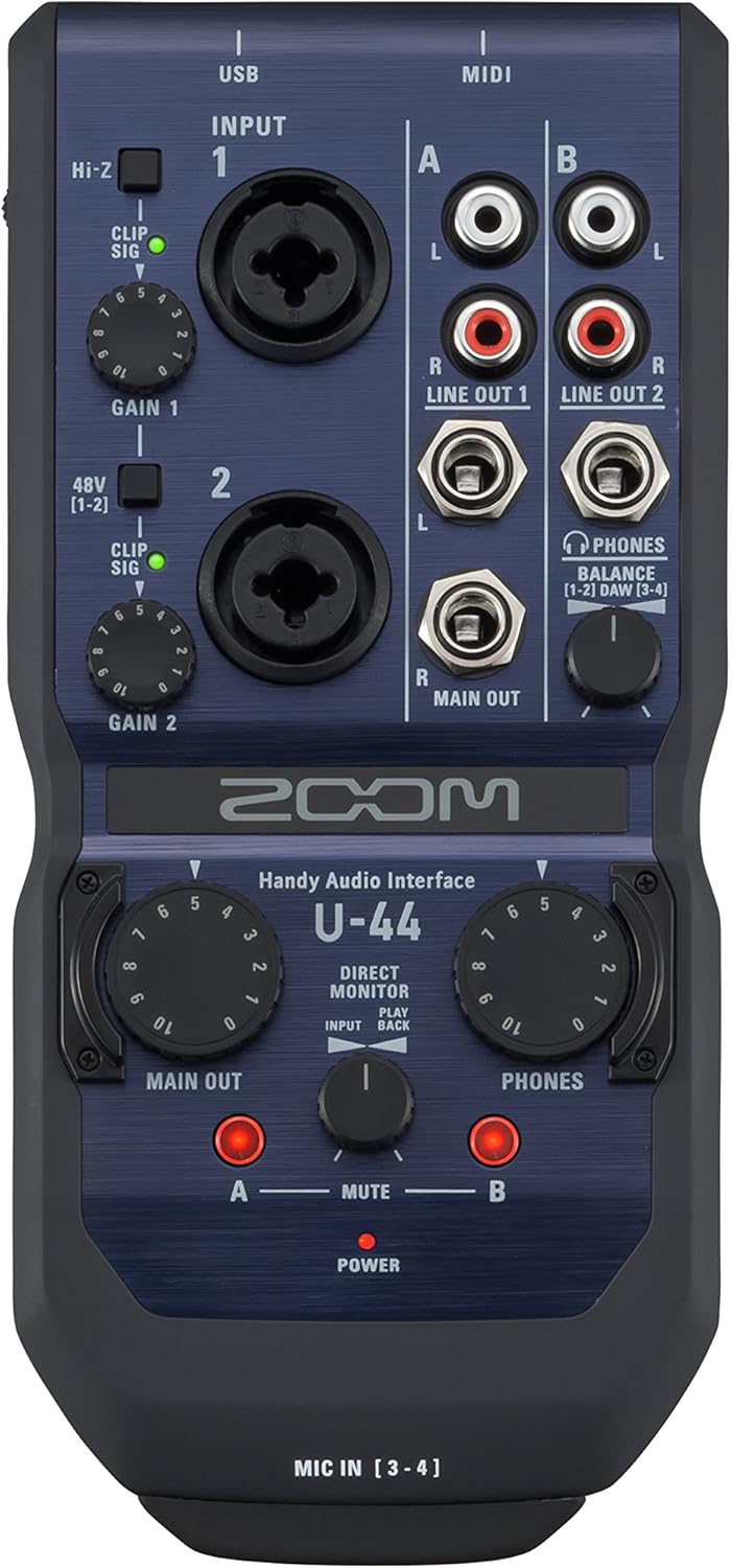 Zoom U-44 është një audio interface kompakt 4-in/4-out, i projektuar për regjistrim dhe performancë kudo që ndodhesh. Pavarësisht madhësisë së vogël, ofron regjistrim dhe riprodhim audio deri në 24-bit/96 kHz, me preamp-e të një cilësie të lartë – të njëjtat që përdoren në Zoom H5 dhe H6.
